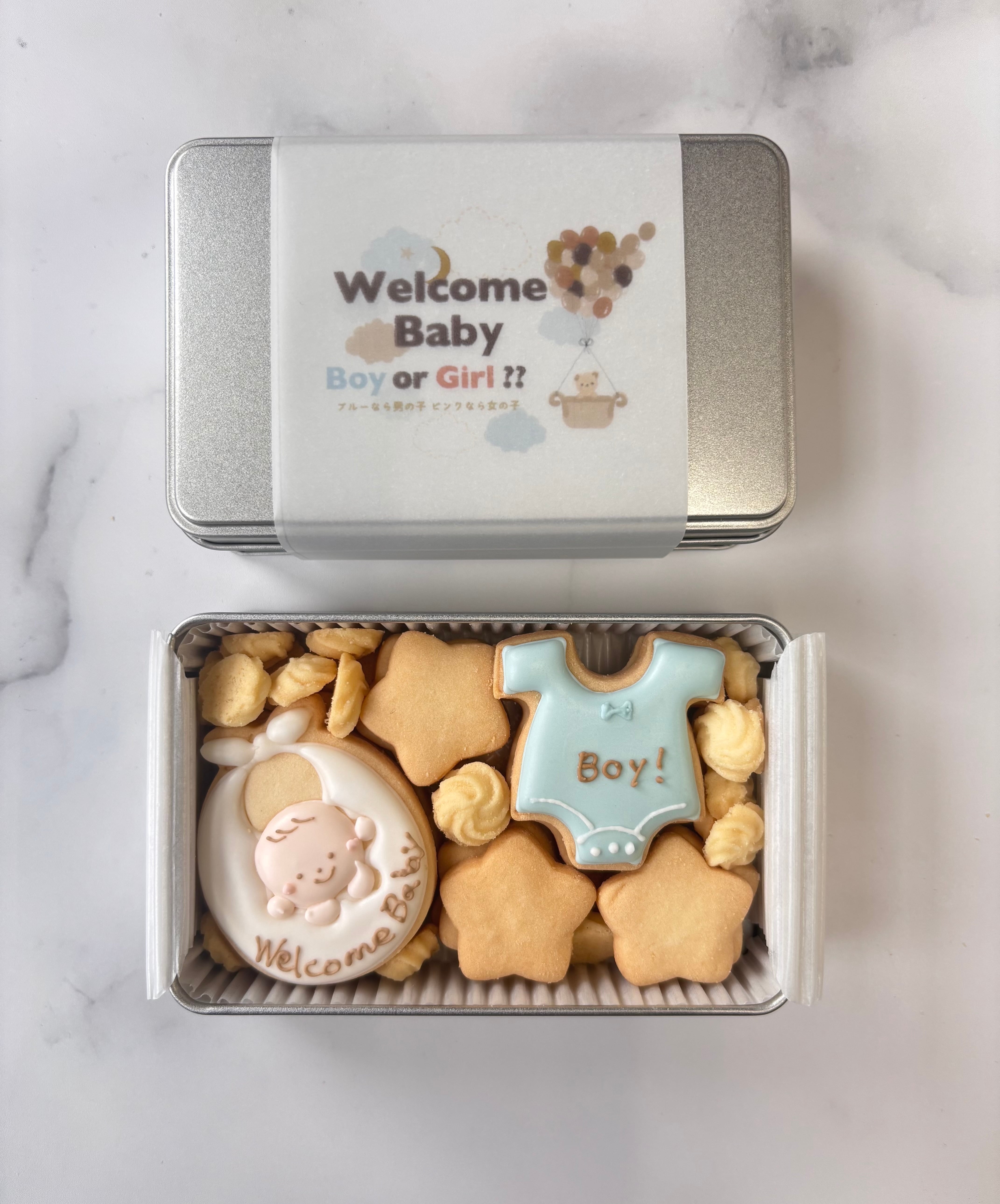 ジェンダーリビールクッキー缶★男の子